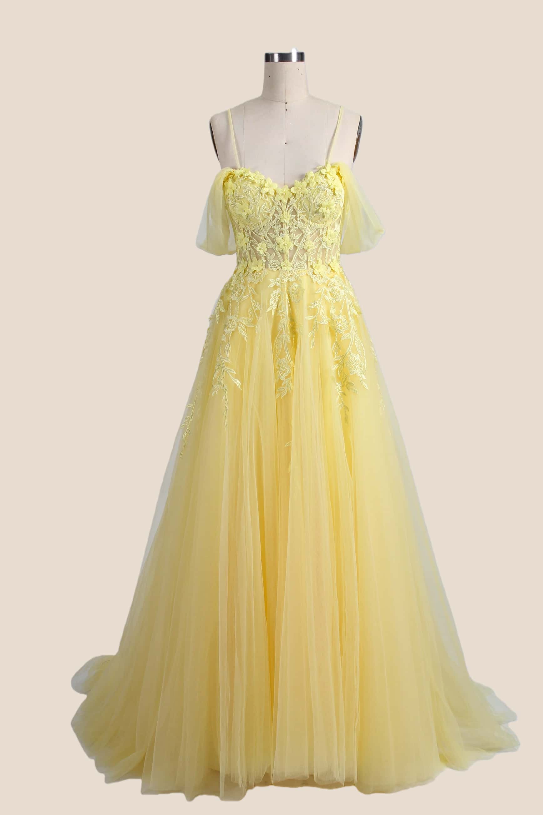 Yellow Strapless Slit Long Dress