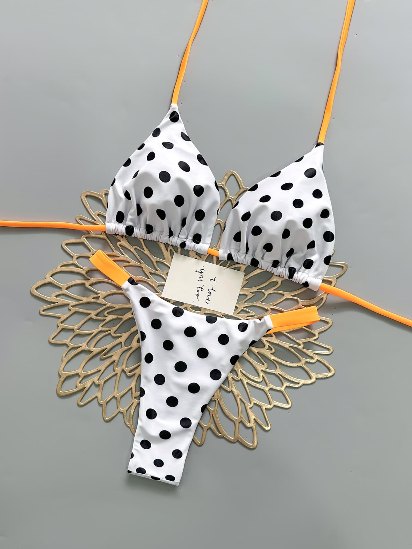 Orange Halter Two-piece Bikini Set