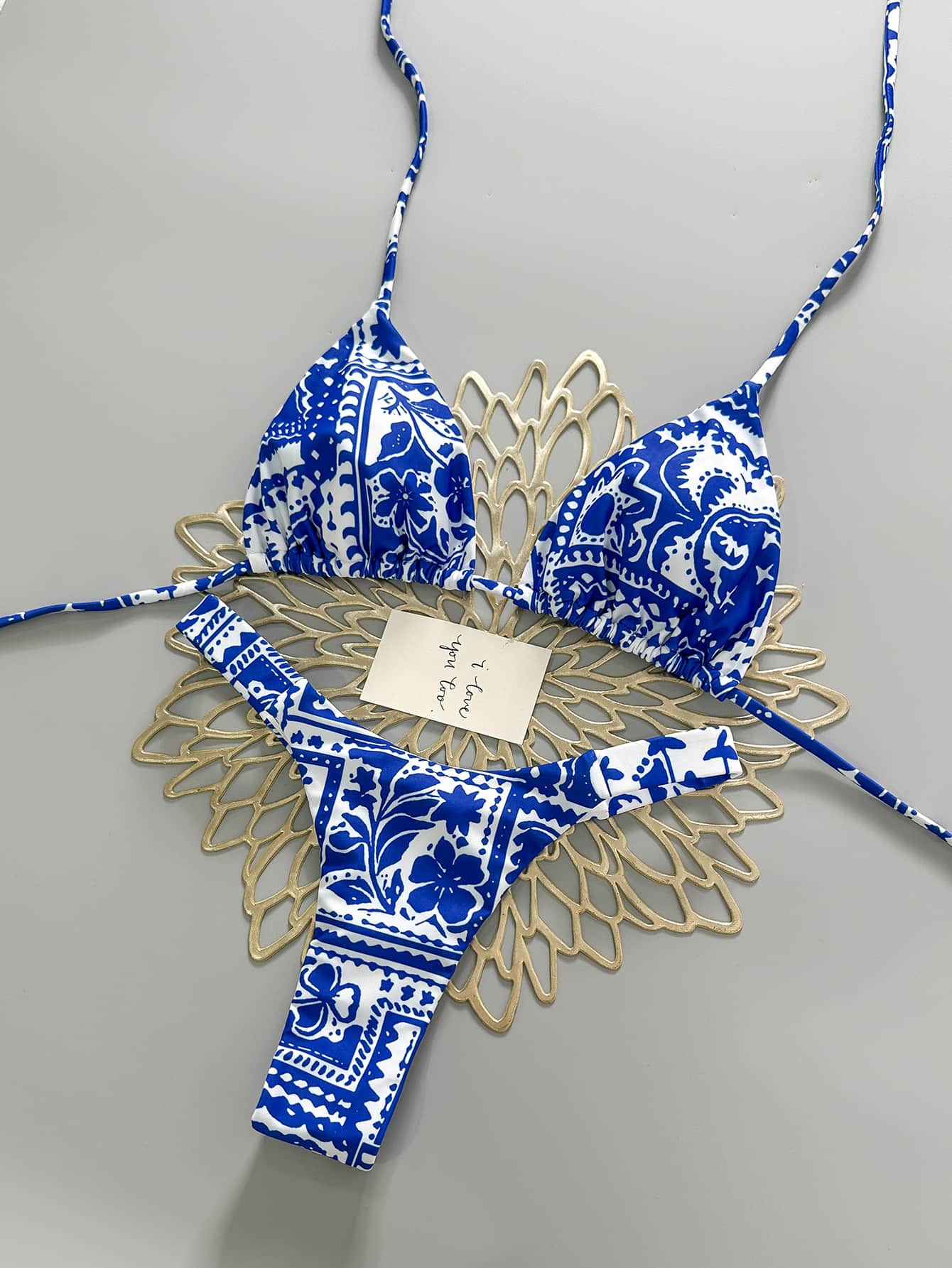 Blue Brint Lace-Up Bikini Set