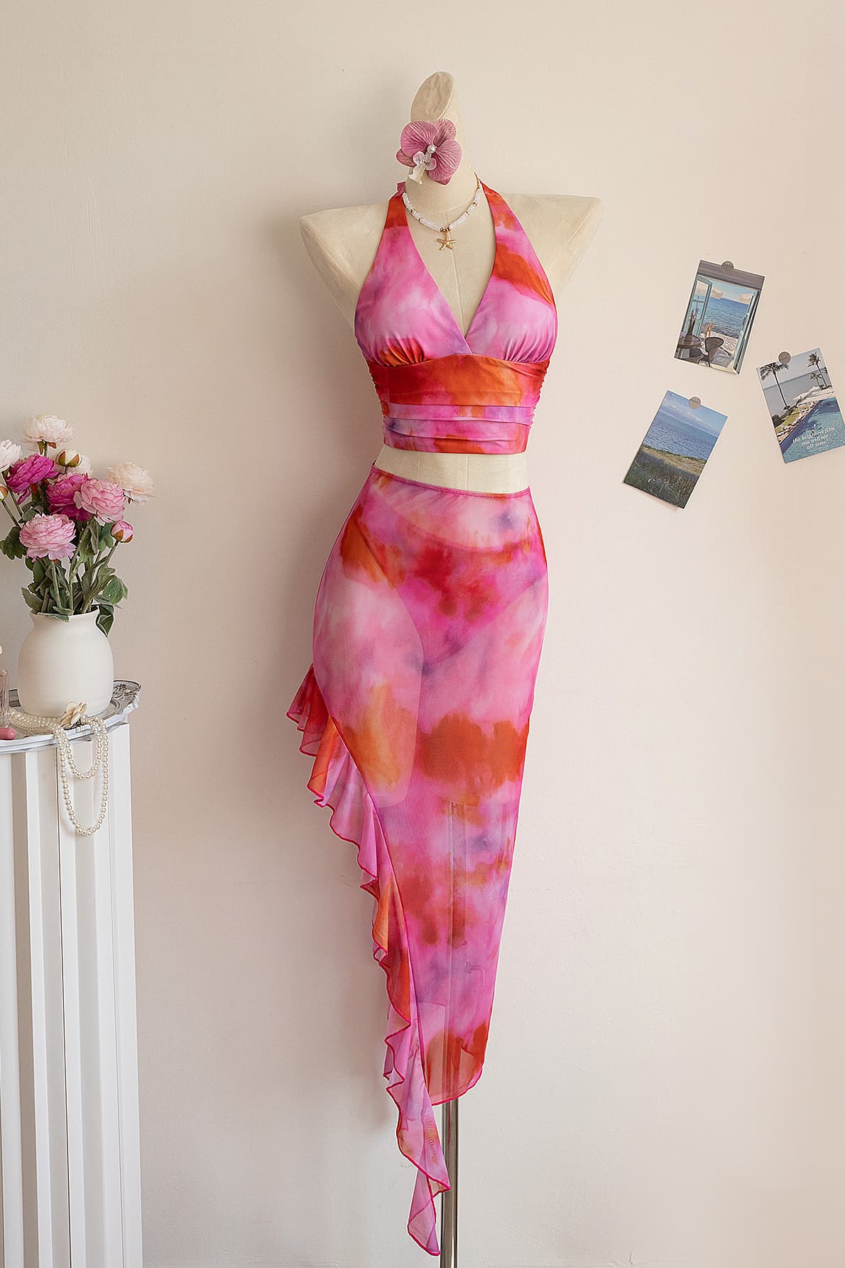 Hot Pink Halter Two-Piece Bikini Set
