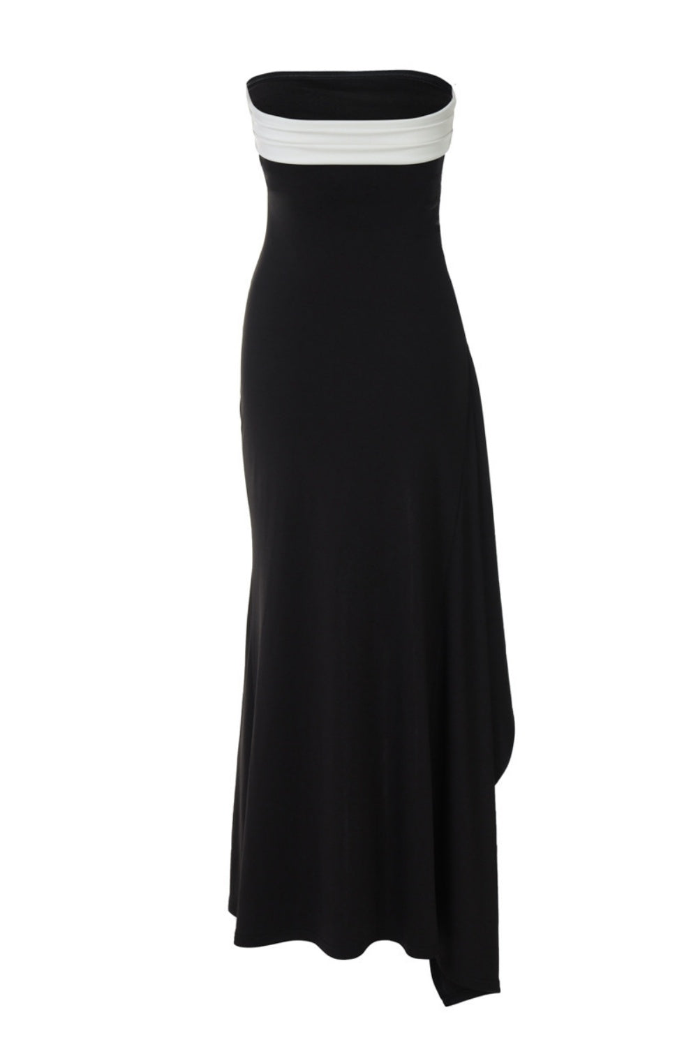 Strapless Black Ruched Frill Long Party Dress