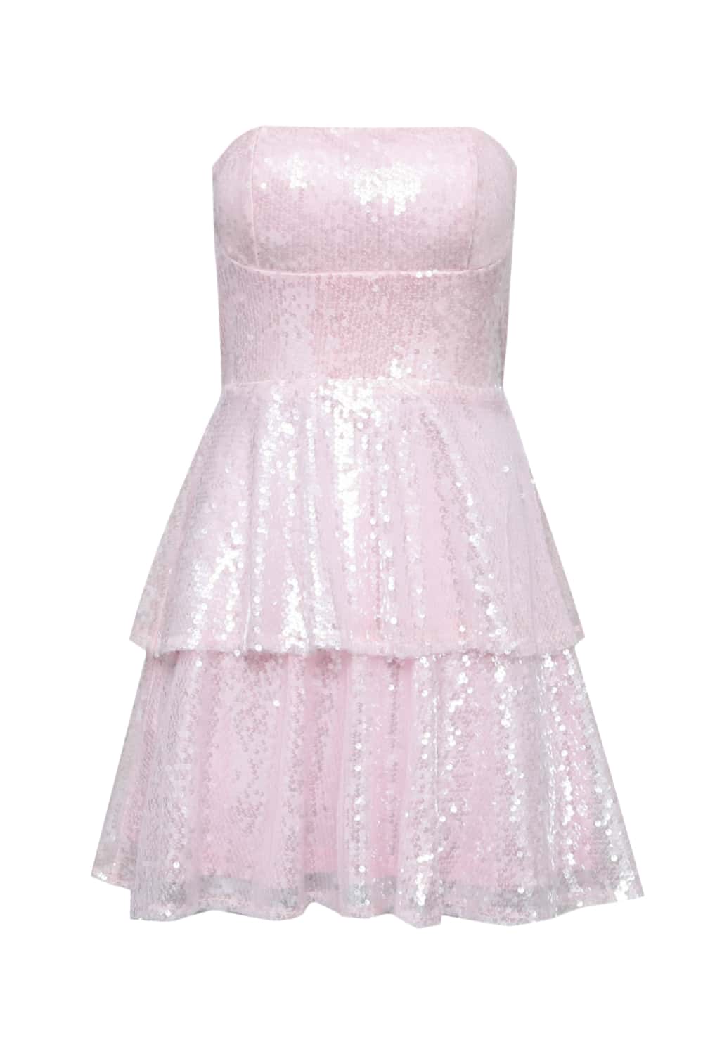 Strapless Pink Back Tie Short Dress