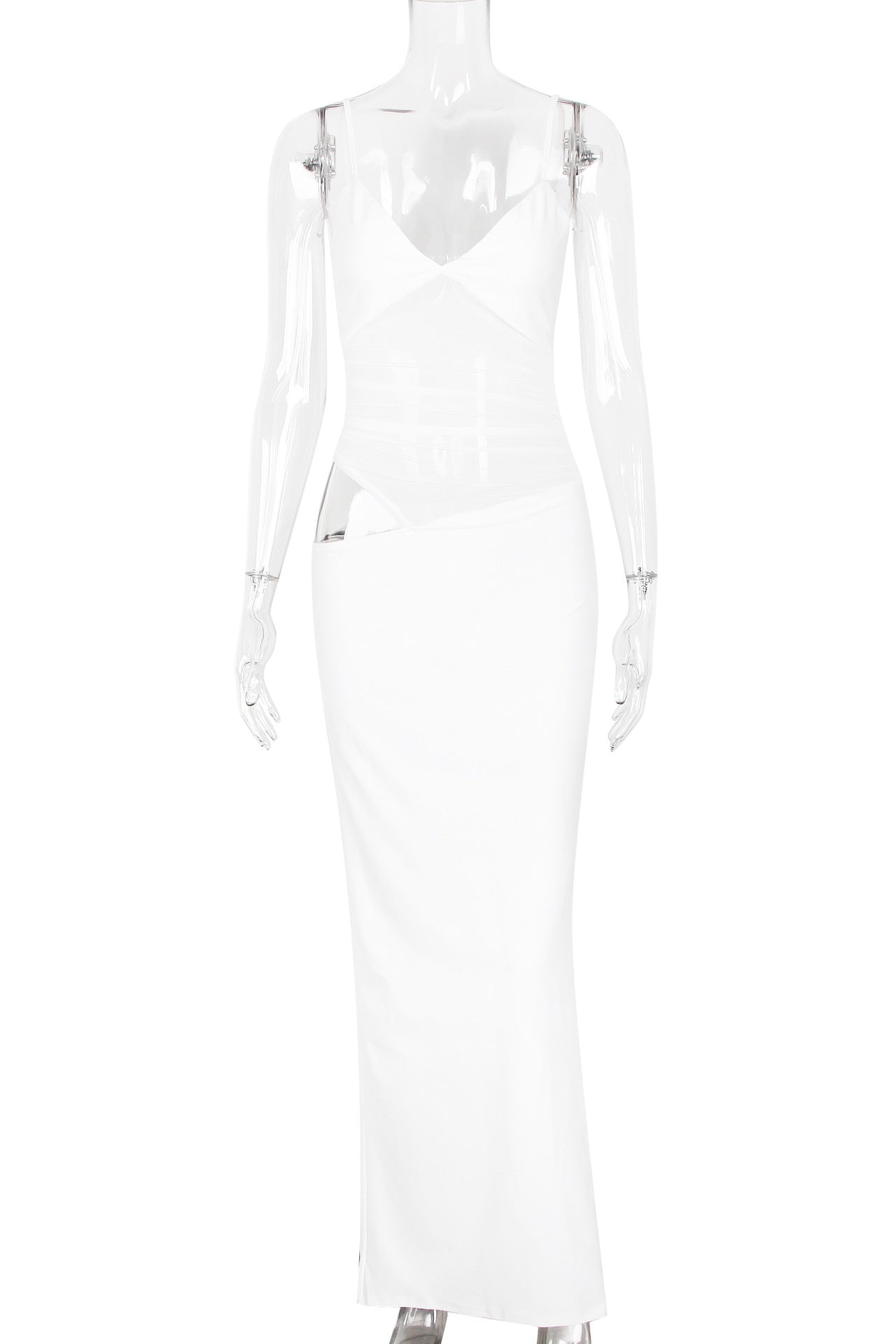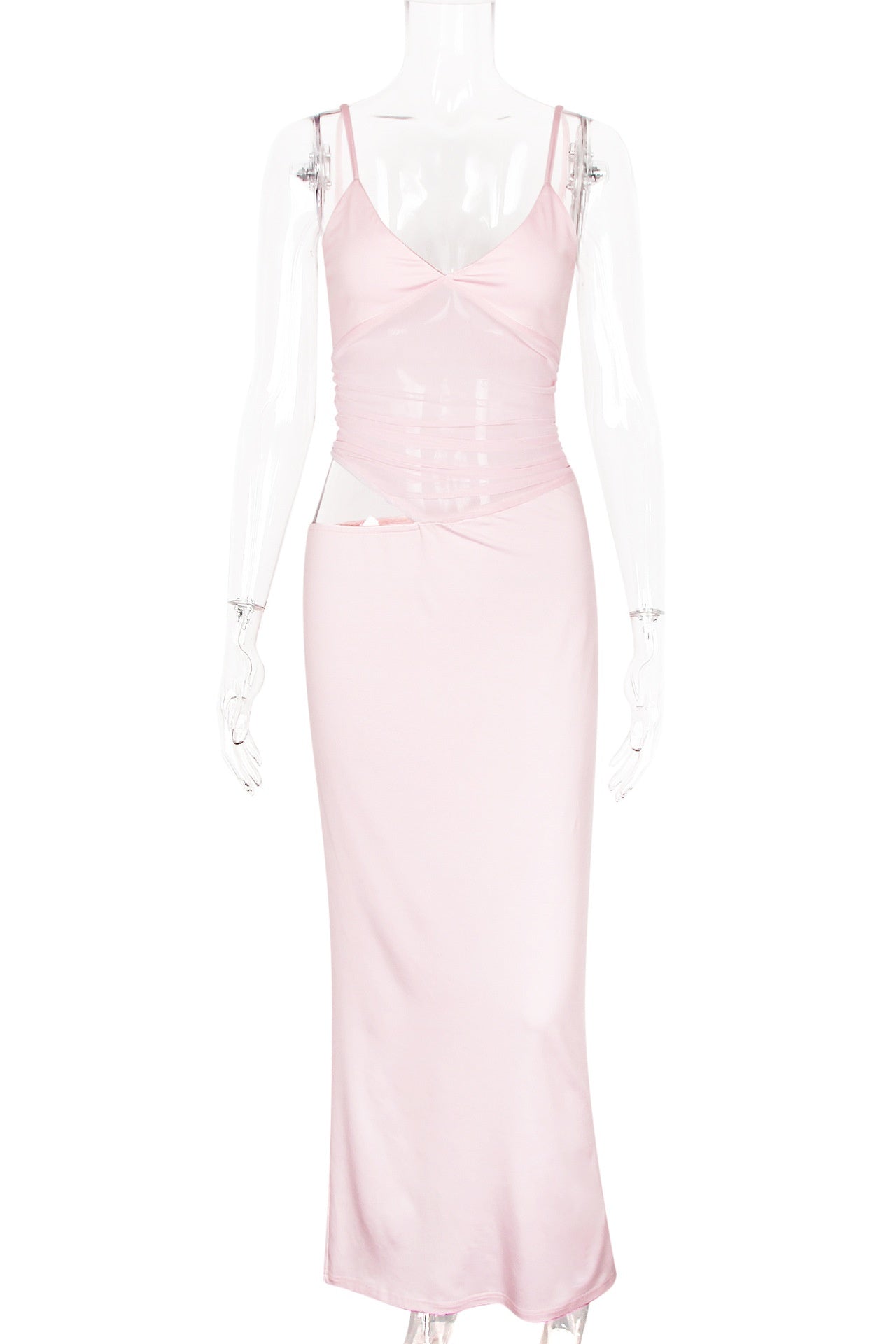 - Sheer cutout at the waist