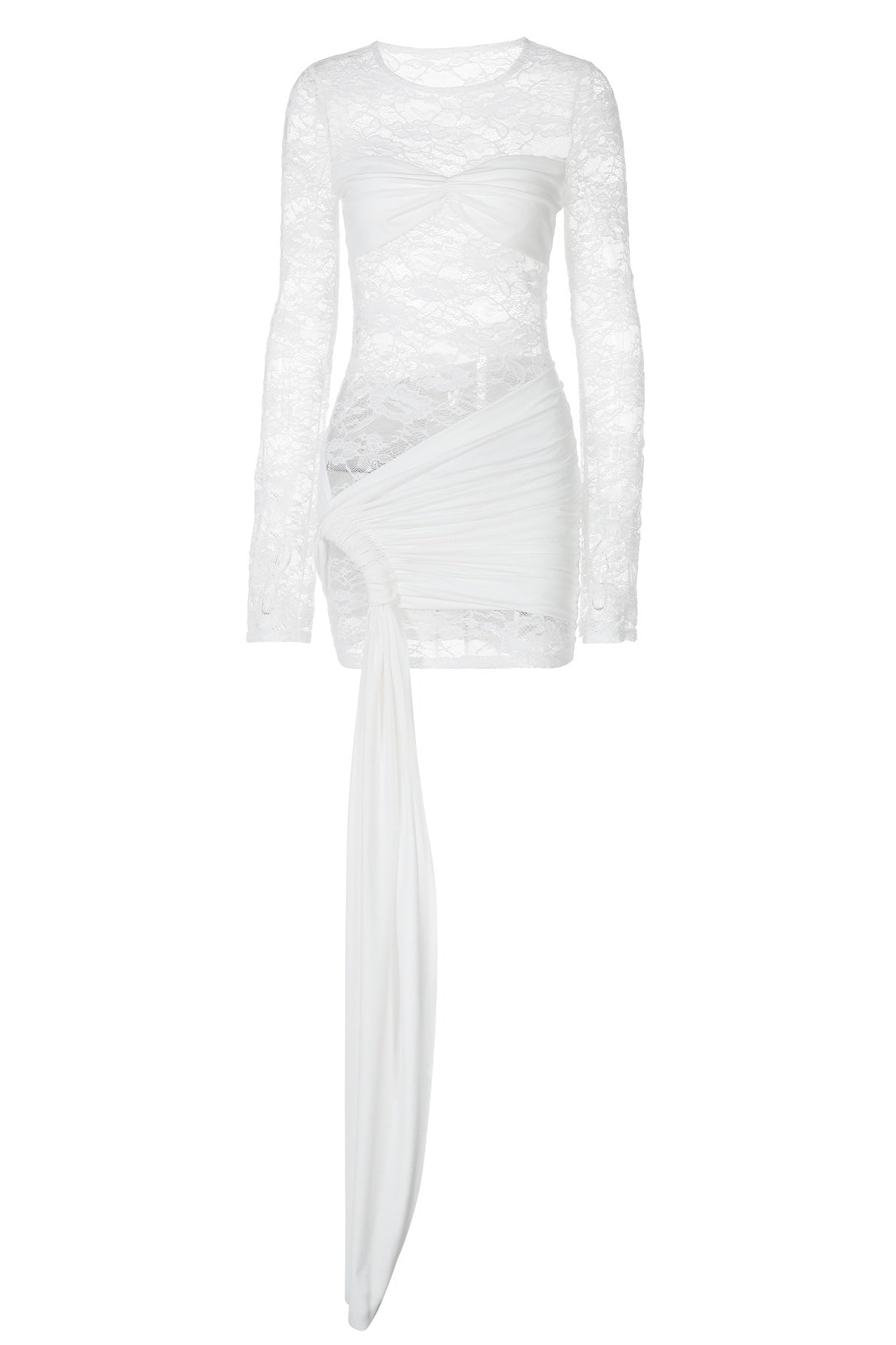 Sexy Red Sheer Lace Twist Tight Short Dress