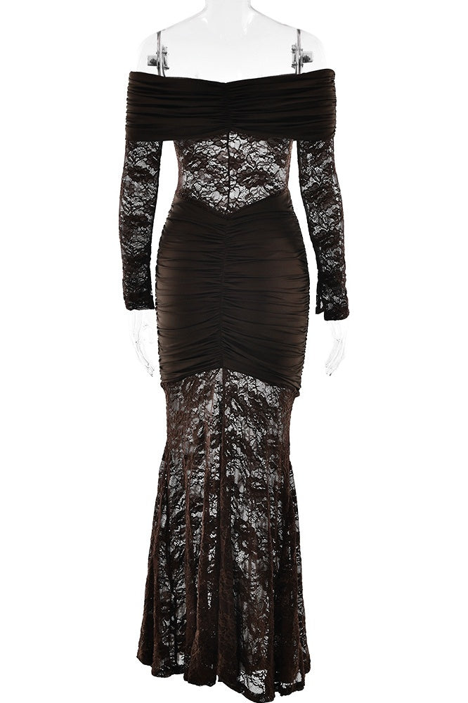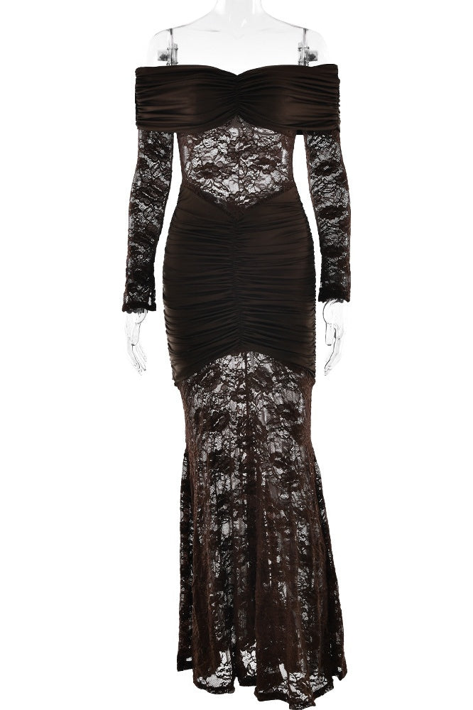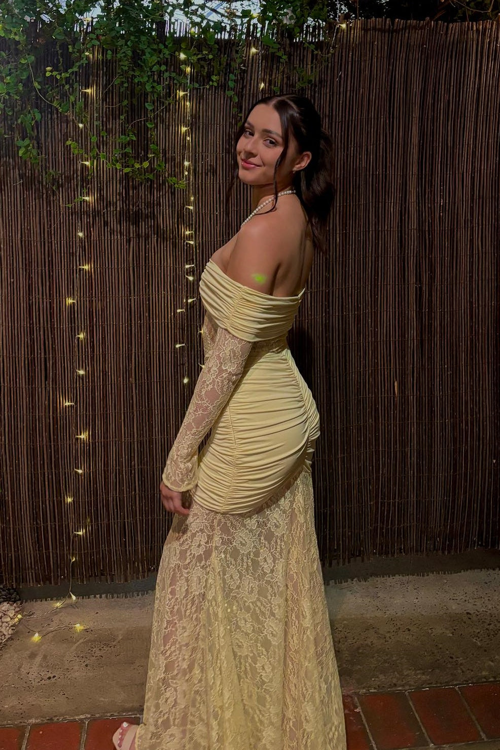 Yellow Lace Off the Shoulder Long Sleeves Dress