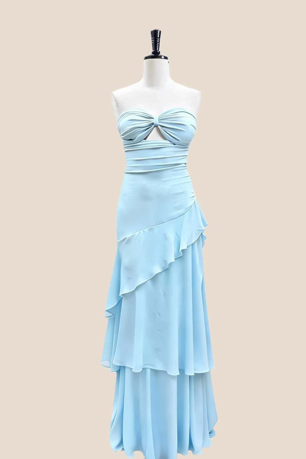 Light Blue Ruffle Fitted Long Dress