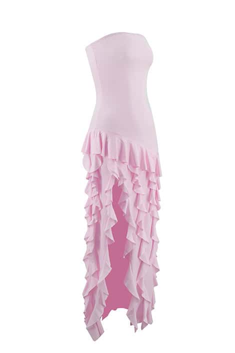 Black Strapless Ruffle Slit Long Dress – Ohmollydress