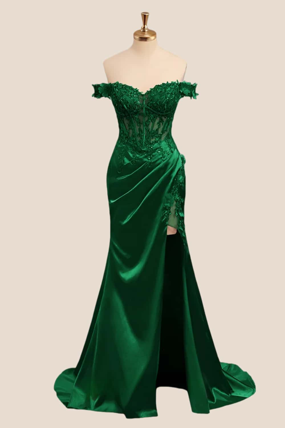 This dress features a mermaid silhouette in a rich wine red color, with an off the shoulder lace corset and side slit. The satin material creates a sleek and elegant look, while the zip-up back adds convenience. This dress is full length and perfect for any special occasion.