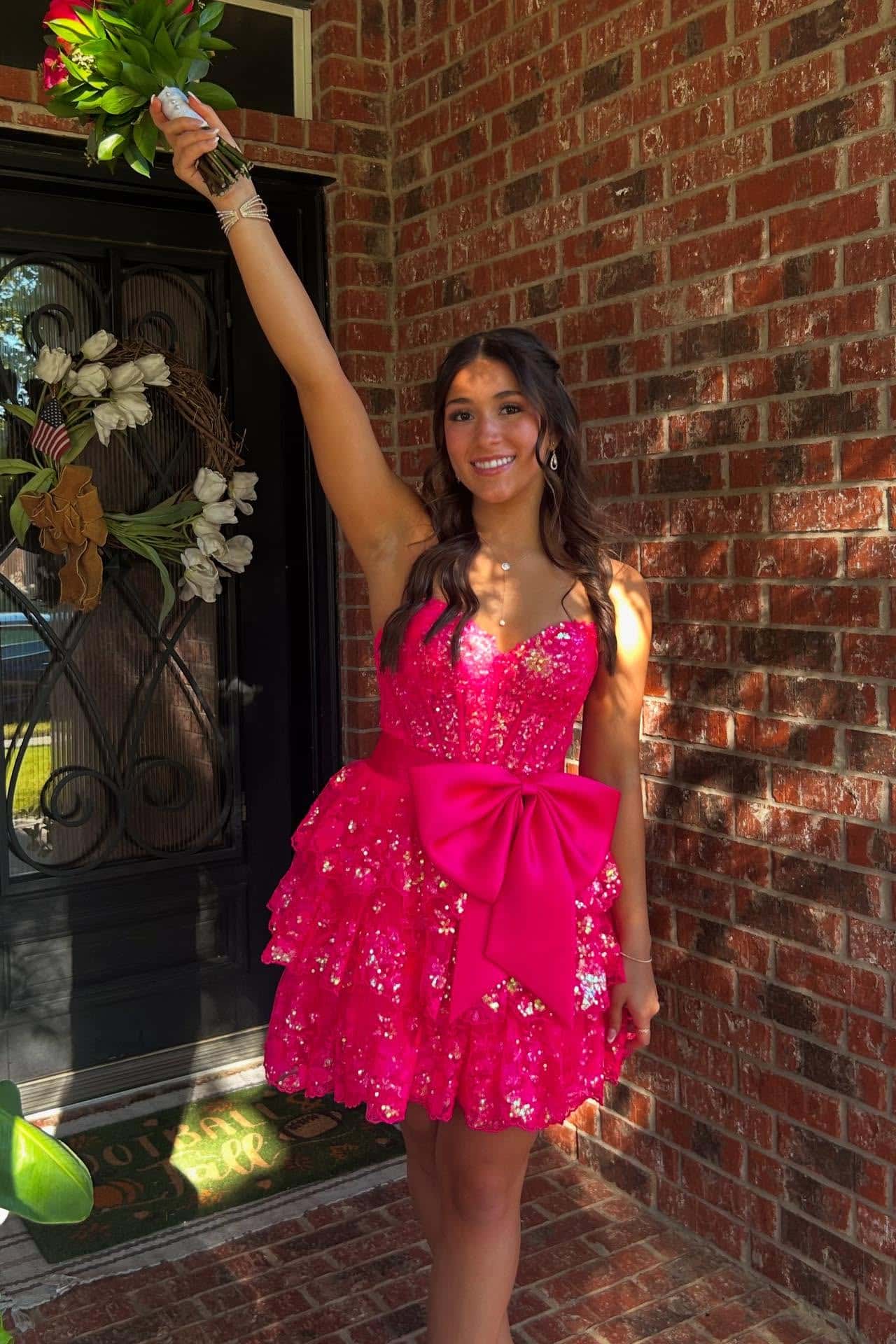 This dress is sure to impress with its stunning Navy blue color and elegant A-line silhouette. The corset bodice and bow front add a touch of charm, while the ruffle-tiered skirt adds a playful flair to the design. The above-knee length is perfect for showcasing your legs, and the built-in bra provides both support and comfort.