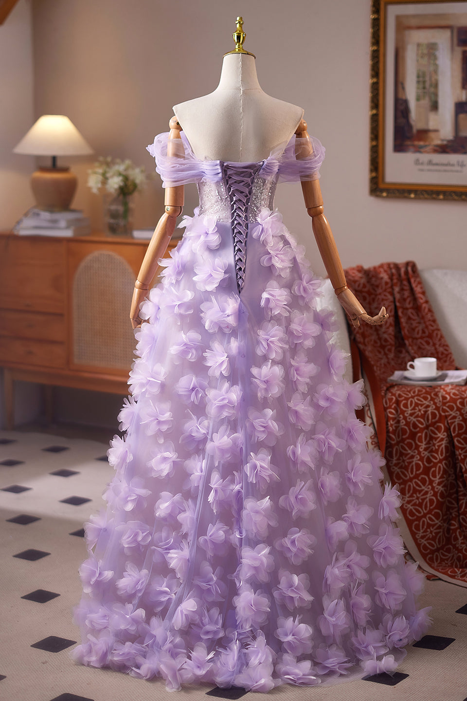Off the Shoulder Lilac Floral Long Dress with Sequin