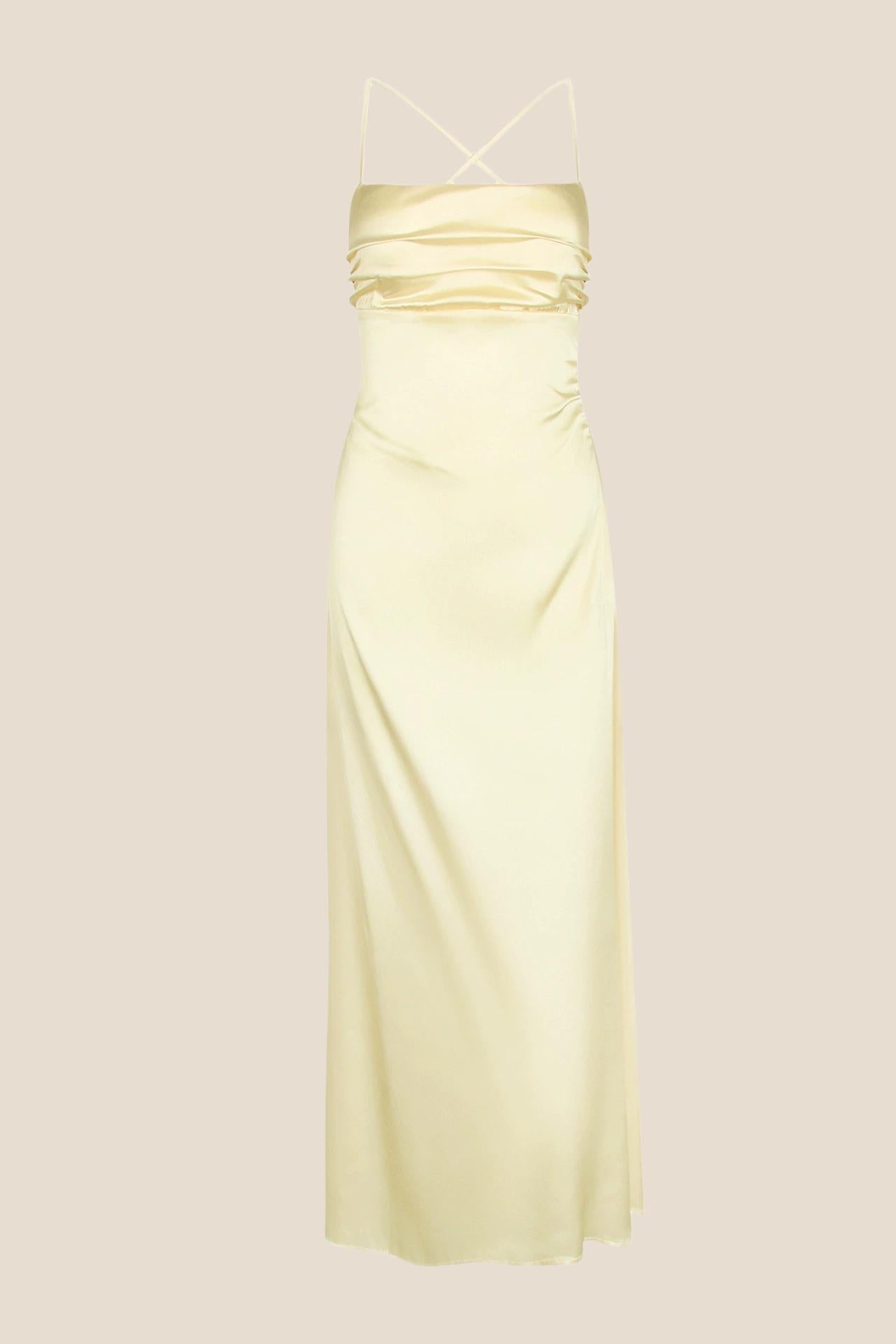 Spaghetti Straps Yellow Back Tie Long Dress – Ohmollydress