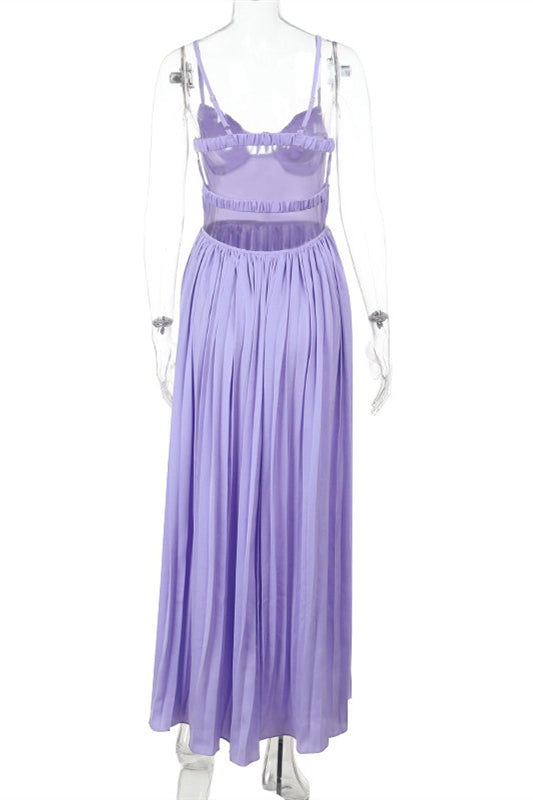 Straps Lilac Pleated Maxi Dress